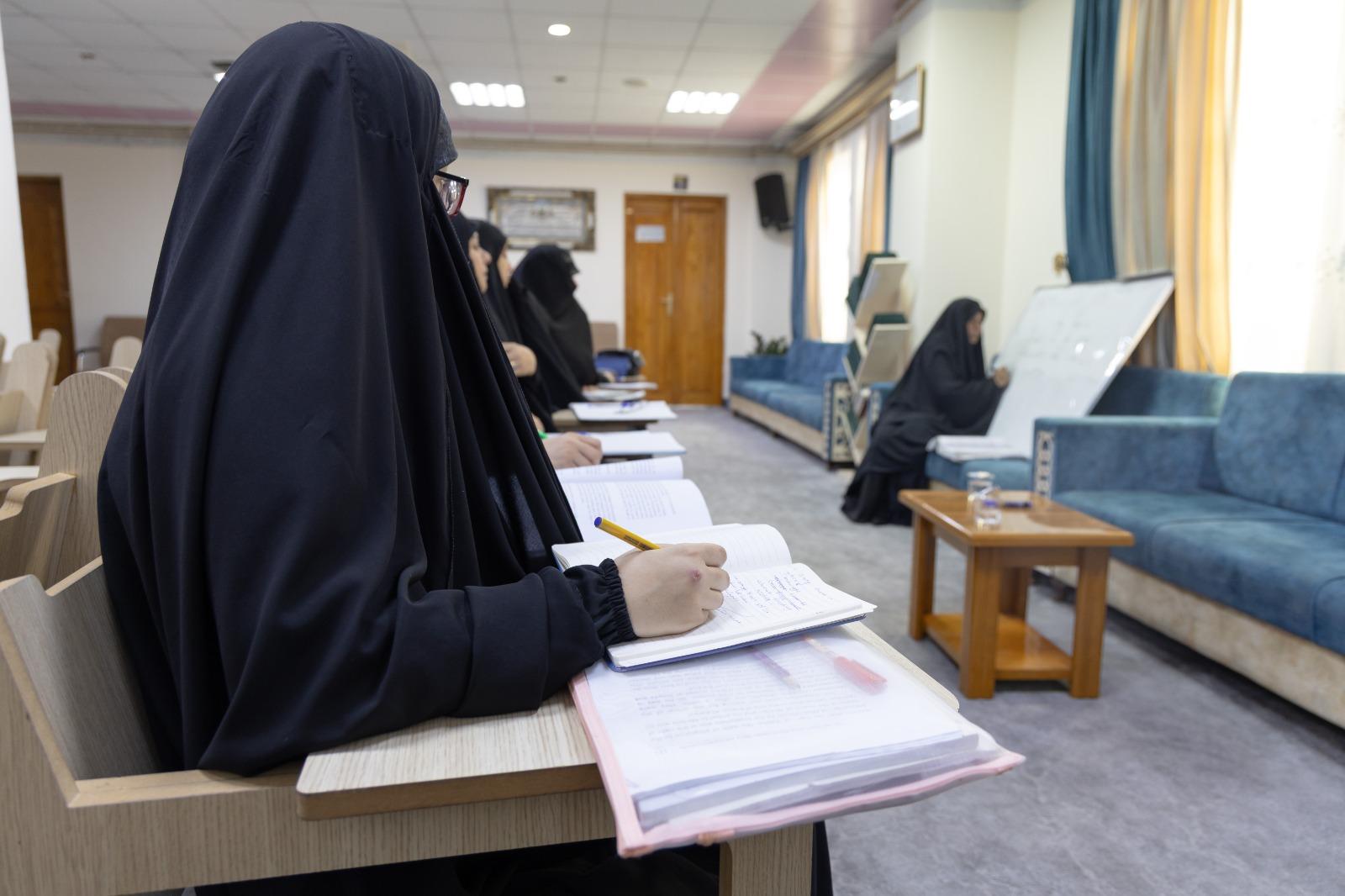 تتواصل الدروس اليومية في معهد الخَطابة الحُسينيّة التابع لمكتب المتولي الشرعي للشؤون النسوية في العتبة العباسية المقدسة، حيث يقدّم المعهد محاضراته المنهجيّة لطالباته ضمن برنامجٍ دراسيّ متكامل يمتدّ على مدار العام. ويتميّز هذا المنهج بثرائه وتنوّعه؛ إذ يضمّ محطّاتٍ معرفيّة متعدّدة تشمل الفقه، والعقائد، والنحو، وأساسيات الخَطابة الحُسينيّة، إلى جانب فنون الأوزان والأطوار، وأحكام تلاوة القرآن الكريم، فضلًا عن دراسة سيرة المعصومين (عليهم السّلام). ويأتي ذلك في سبيل تحقيق غايةٍ سامية، تتمثّل في إعداد خطيباتٍ مؤهّلات يمتلكن أدوات الخطاب الحسينيّ، قادراتٍ على إيصال رسالته النبيلة بأسلوبٍ مؤثّرٍ وهادف، يسهم في الارتقاء بالمجتمع النِّسوي وخدمته بأتم صورة.